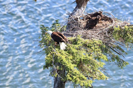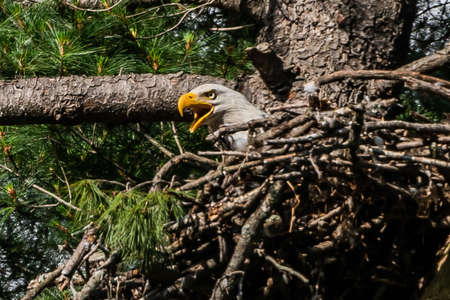 Bald Eagle (Haliaeetus leucocephalus) in the nest of a tree