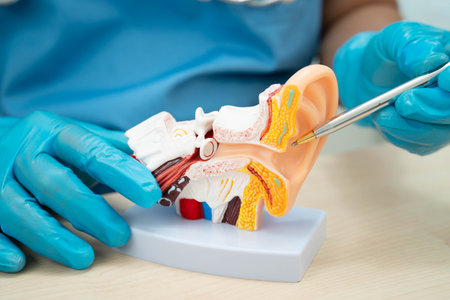 Medical audiologist ear deafness teaching plastic model for diagnosis of deaf patients.