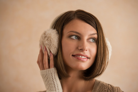 Young beautiful woman wearing warm earmuffs outdoors