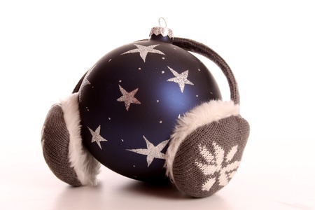 Bauble for Christmas with earmuffs to express cold Christmas