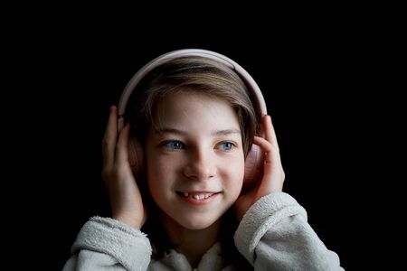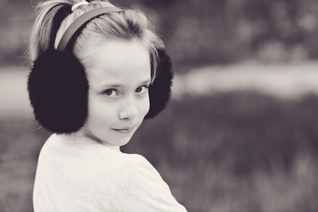 Teen girl enjoying music in fluffy headphones