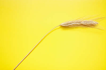 Spiny ears of rye filled with grains on a yellow background. Rye is a typical cereal grain for food.