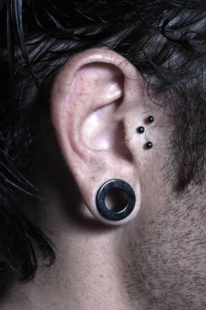 The big aperture in an ear at the teenager
