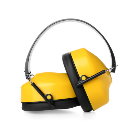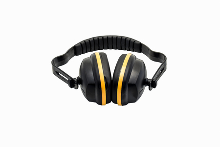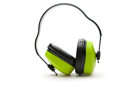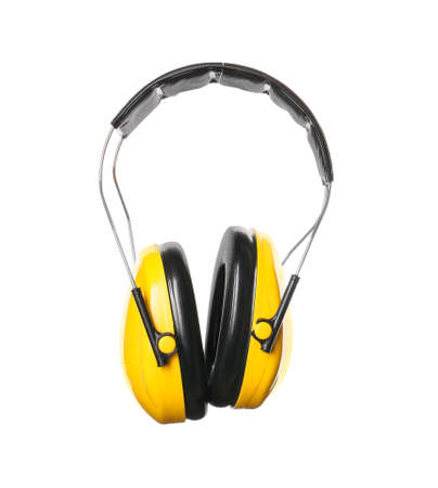 Protective ear muffs as industrial safety equipment isolated on white background.