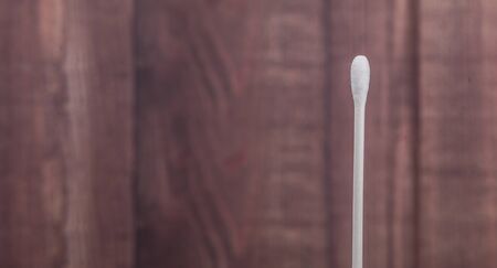 White cotton bud or cotton swab over wooden background