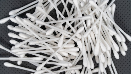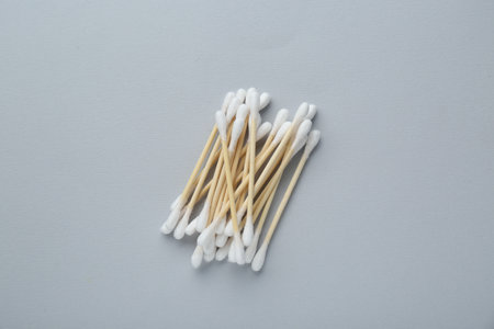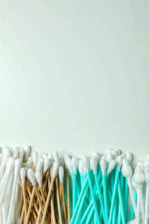A group of ear swabs or cotton ear sticks on the light background. Ear care concept for Hygiene.
