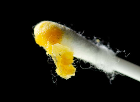 wand with earwax isolated on a black background