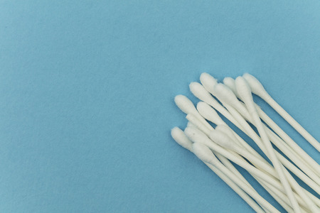 A swab clean health care top view,cotton bud on blue background.