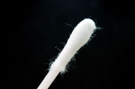 A cotton swab closeup against a black background.