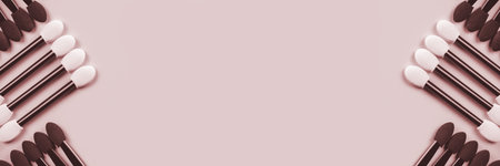 Set of applicators for shadows on red background. Shadows and eye makeup. Application of eyebrows. Banner. Toned.