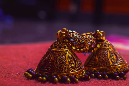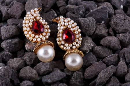 Indian traditional ethnic jewellery over plain background. Selective focus.