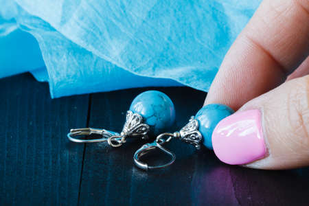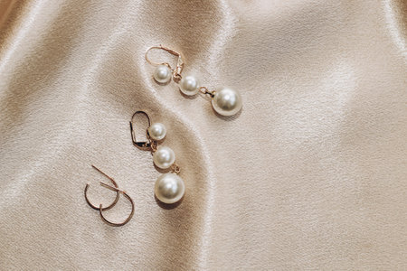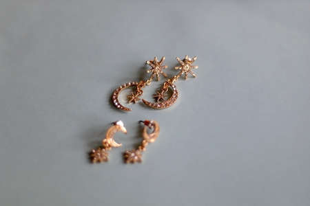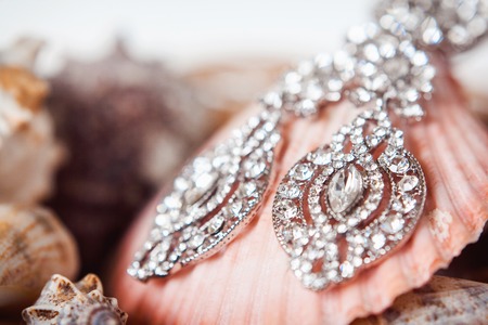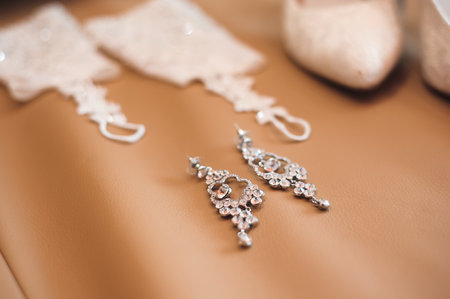 Beautiful earings jewellery of the Bride before wedding - romantic detail