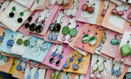 Various shapes and shades of earrings , handicrafts on display during the Handicraft Fair in Kolkata , earlier Calcutta, West Bengal, India. It is the biggest handicrafts fair in Asia.