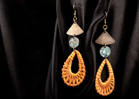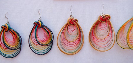 Colorful decoration for sale. Earrings handmade, Luang Prabang, Laos. Close-up