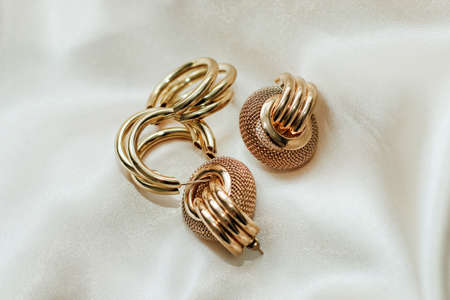 Women's jewelry, gold chain, trendy jewelry on a silk background.