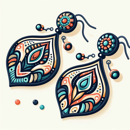 Illustration of earrings with ethnic ornament. Hand drawn vector illustration.