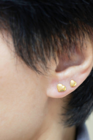 Earring in the male ear. Piercing Part of the body. Young man