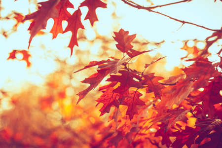 Autumn leaves in the sunlight. Beautiful nature scene with autumn leaves.