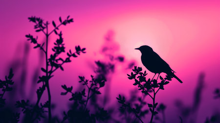 A beautiful little bird silhouetted against a colorful sunset, capturing the magic of twilight.