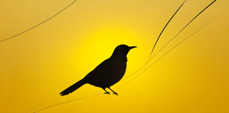 A striking silhouette of a bird perched on a wire, set against a vibrant orange sunset. This image captures the beauty of nature in a simple yet powerful composition.