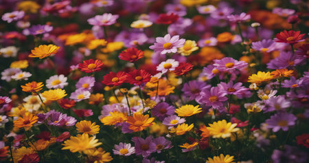 A vibrant display of colorful flowers in a lush garden setting. The image captures the beauty and diversity of nature in full bloom. Perfect for nature lovers.