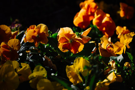 Sunlit yellow and orange flowers create a vibrant, cheerful scene in the garden. A close-up view of vibrant yellow and orange flowers basking in sunlight, creating a warm, inviting scene.