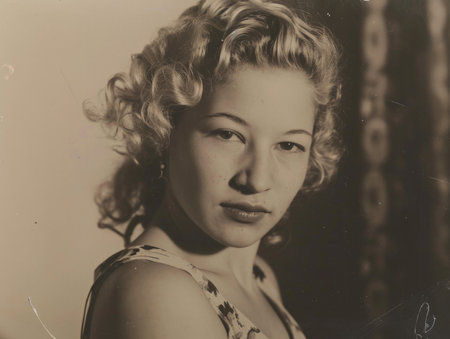 Photorealistic Teen Latino Woman with Blond Curly Hair vintage Illustration.