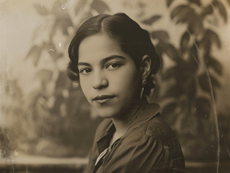 Sepia-toned vintage portrait of an elegant young woman, showcasing historical fashion and timeless beauty. Ideal for heritage, nostalgia, or documentary projects requiring an authentic antique feel.