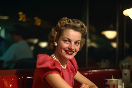 Elegant Woman Sitting in a Booth at a 1950s Diner