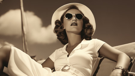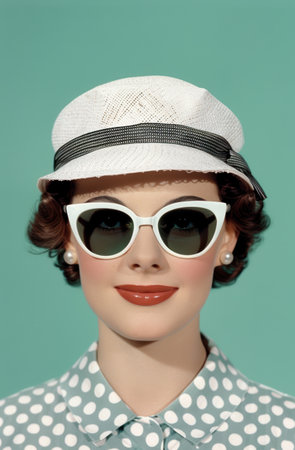 Retro woman in sunglasses and hat