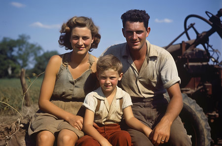 Retro vintage family on the photo