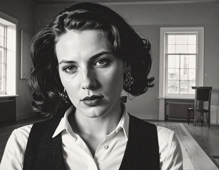 Portrait of a beautiful young woman in a black and white photo