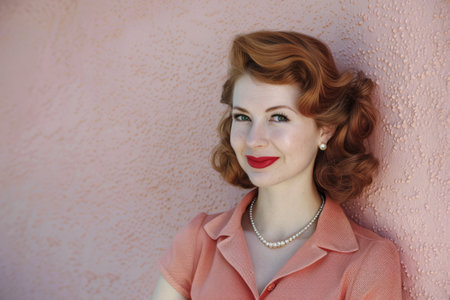 Portrait of a young woman from the 50s isolated from a copy space background