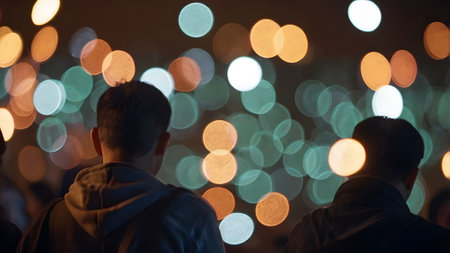 Crowd of people in the city at night with bokeh lights
