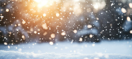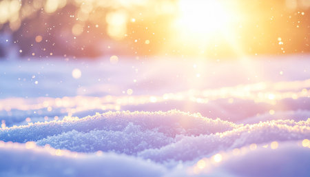 Sparkling snow surface at sunset with bokeh effects