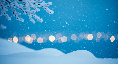 Bokeh lights sparkling against a snowy landscape, closeup view