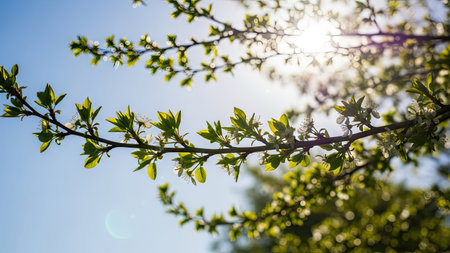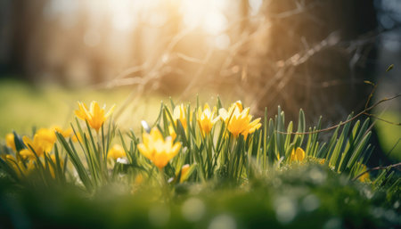 Scene of a sunny morning in springtime is captured with vibrant colors and bright light. The overall ambiance is joyous and happy, evoking a sense of renewal and freshness. AI generative illustration
