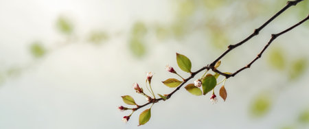 Blooming cherry blossom branches during springtime in a serene garden