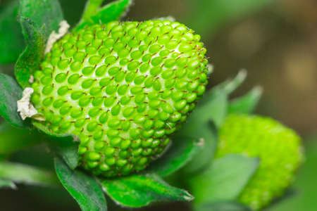 green strawberry close-up spring start of the season ripening berries
