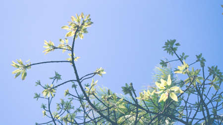 The leaves pink color of the Bodhi Tree in the summertime with the sunlight in midday.