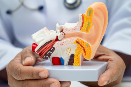 Medical audiologist ear deafness teaching plastic model for diagnosis of deaf patients.