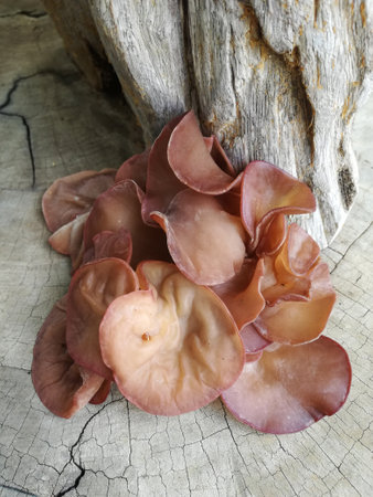 Auricularia auricula-judae mushroom on tree in spring fresh cloudy color day