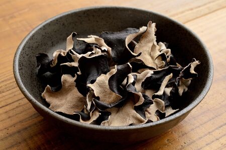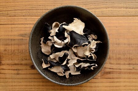 Heap of dehydrated Jews Ear mushrooms, Asian cuisine ingredient