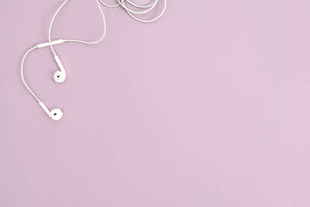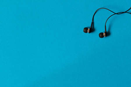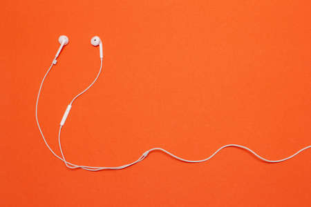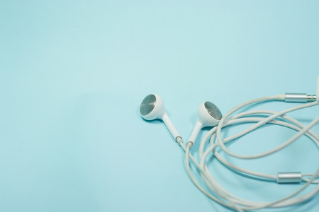Wired earphones for smartphone and other player. Selective focus on earphone.
