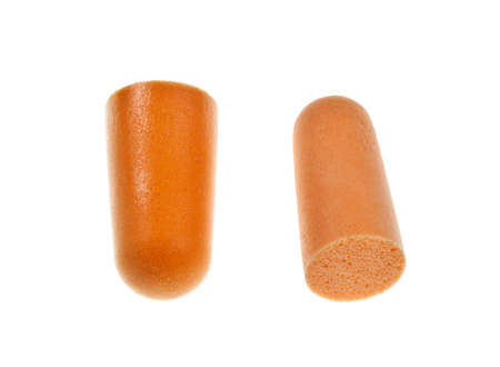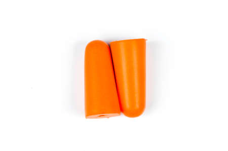 Foam ear plugs isolated on white background.Orange ear plugs isolated