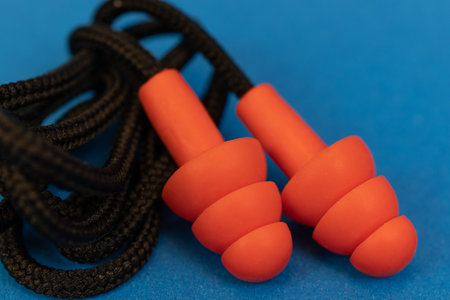 Ear plugs with cord over blue background