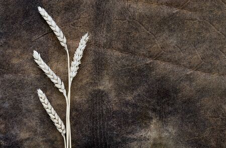 Creative image of beautiful wheat crops on artistic ink background. Top view with copy space. Symbols of jewish holiday - Shavuot