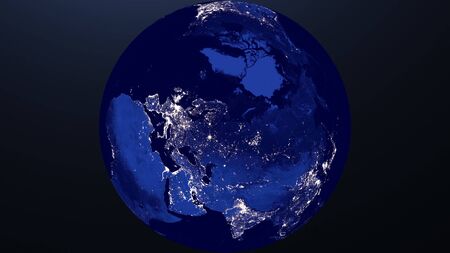 Surface of Earth planet in deep space. Outer dark space wallpaper. Night on planet with cities lights. View from orbit. Earth at he night. Civilization.