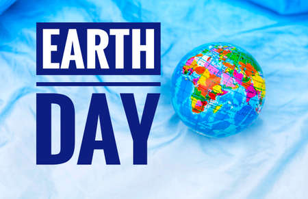 Earth day concept, global ball on on white and blue fabric texture background-01