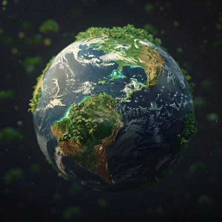 A stunning 3D rendering of Earth, rich in lush greenery and detailed ocean textures. This image visually represents the beauty and fragility of our planet.